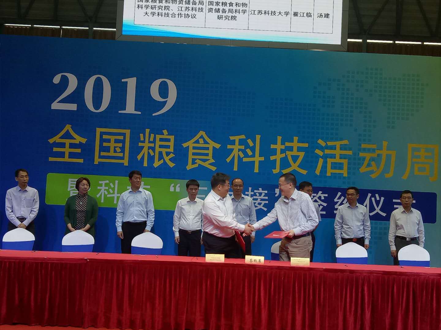 5月21日下午,在2019年全国粮食科技活动周活动现场,国家粮食和物资储备局科学研究院与公司签订科技合作协议,国家粮食和物资储备局副局长黄炜见证签约,参会的司局、省局、院校负责同志参加签约,汤建副董事长代表公司在协议书上签字。