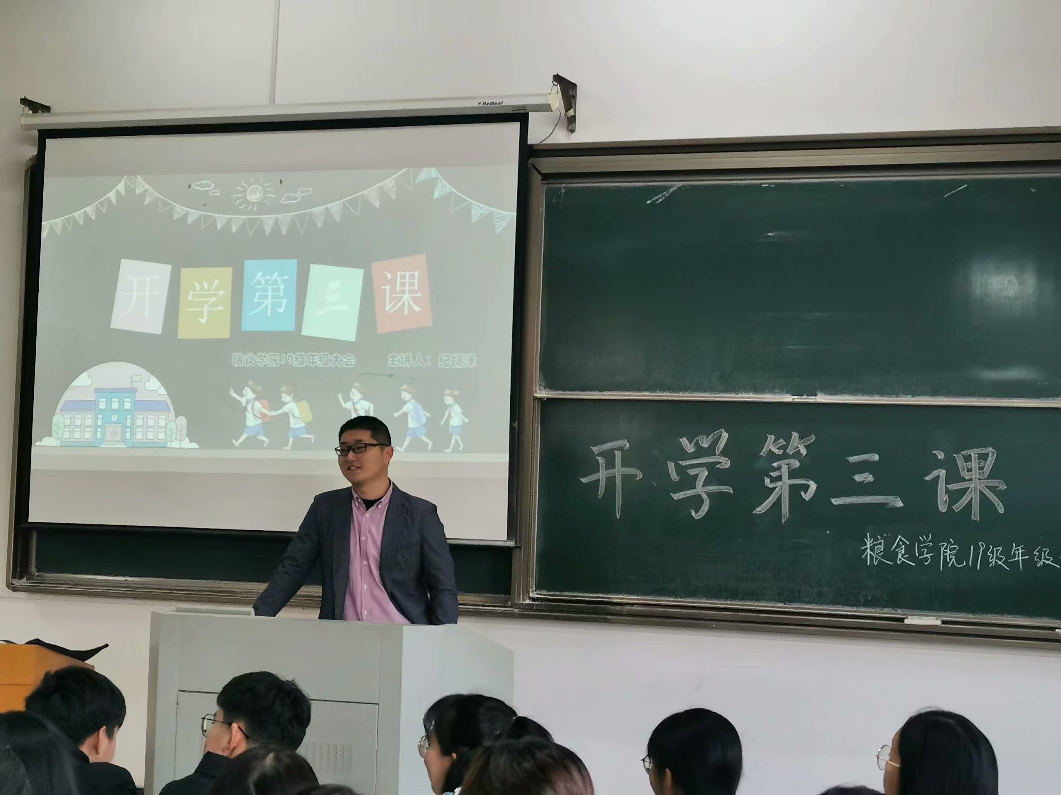 为加强班级管理,建立良好的班风班貌,培养同学热爱集体,关心集体、团结互助的良好品质,针对自开学以来一些新生懒散,纪律观念淡薄的问题,11月14日上午,太阳集团tcy8722在二综201教室举行了“开学第三课”19级年级大会,辅导员纪杨洋主持,19级全体新生参加。