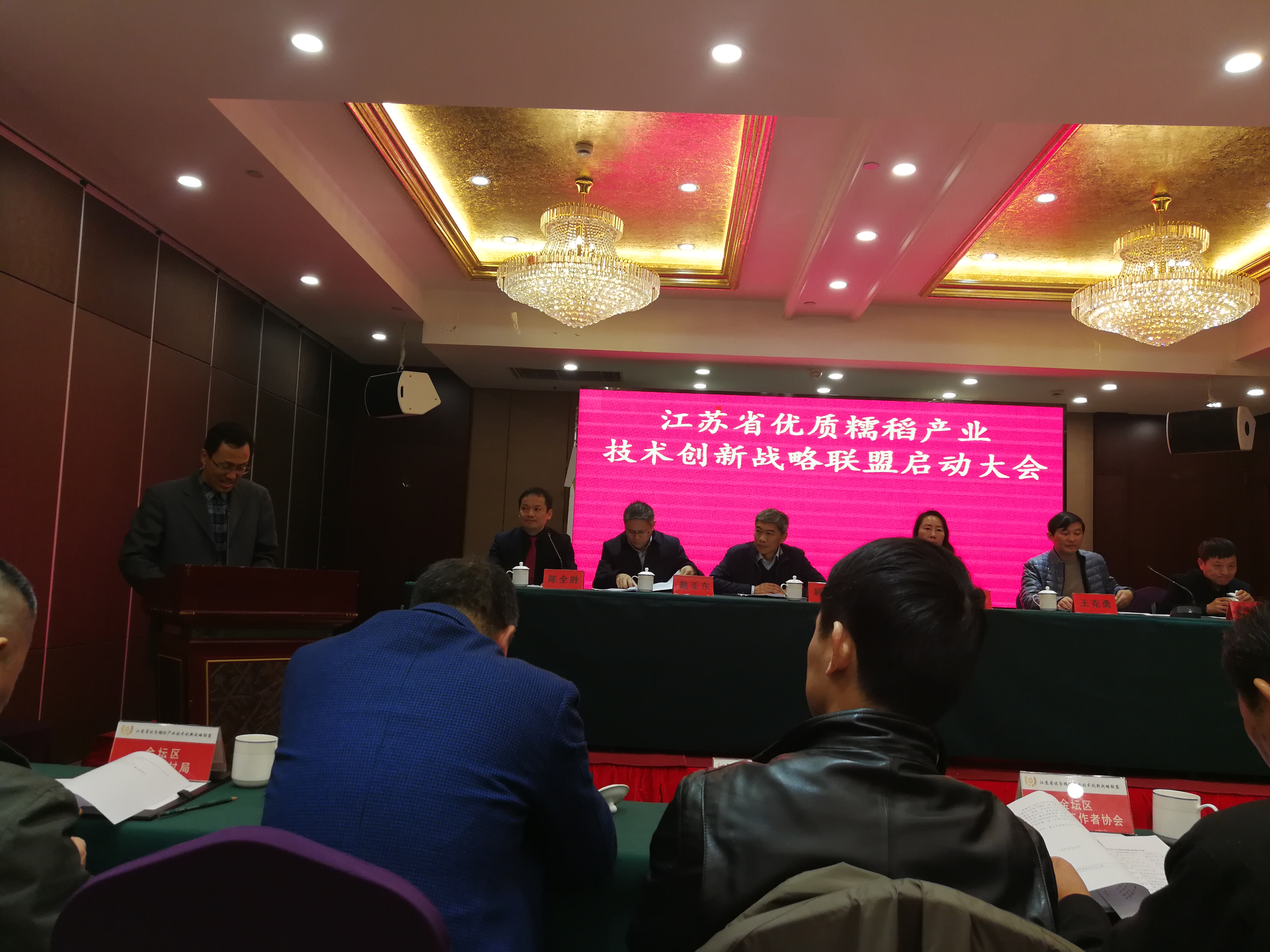 12月14日,经省科技厅最新批准的省优质糯稻产业技术创新联盟在常州市金坛区启动。太阳集团tcy8722李炳义书记和郭元新教授出席了大会。
