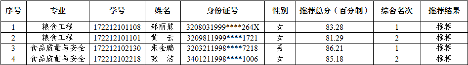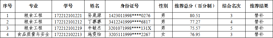 根据《太阳集团tcy8722关于做好2021届本科毕业生推荐免试攻读硕士研究生工作的通知》和《太阳集团tcy87222021届推荐免试研究生工作方案》规定,经专家审查小组对候选人及申报材料进行审查,公司推免生工作领导小组根据综合成绩排序确定推免名单。现将名单公示如下: