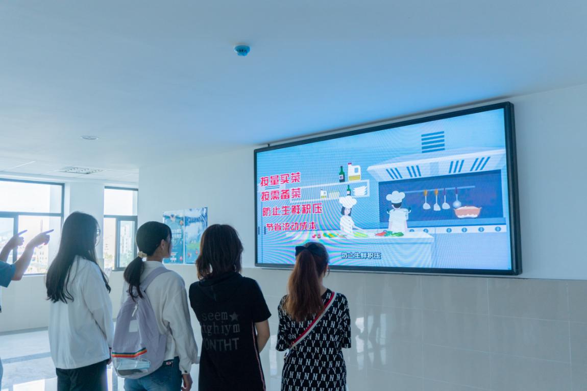 大屏幕前,循环展播着00后老员工自己制作的“谁知盘中餐粒粒皆辛苦”科普短片吸引一众员工围观学习,各种餐饮节约小知识引导大家减少餐桌、餐盘剩饭菜现象;来往公司餐厅的员工们驻足观看节粮爱粮海报,了解粮食流通条例、学习“坚决制止餐饮浪费”倡议书、粮油健康消费常识等内容。计算机公司的刘源同学表示:“刚刚吃完饭经过这里,看到这么多海报,很有意思,同时也学到了好多有用的食品安全和粮食节约小知识,我觉得厉行节约,反对浪费应该成为每个公民的自觉意识。”