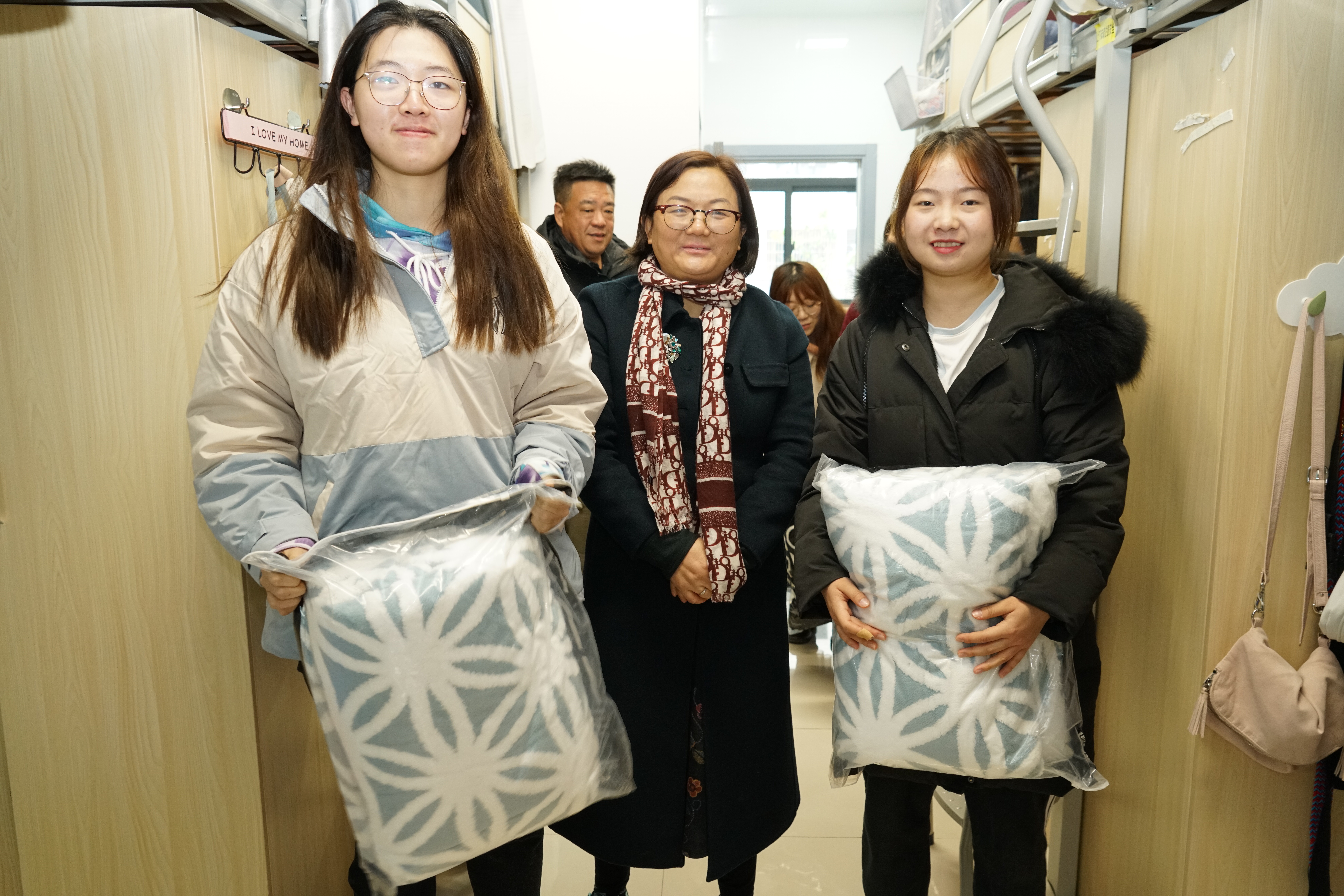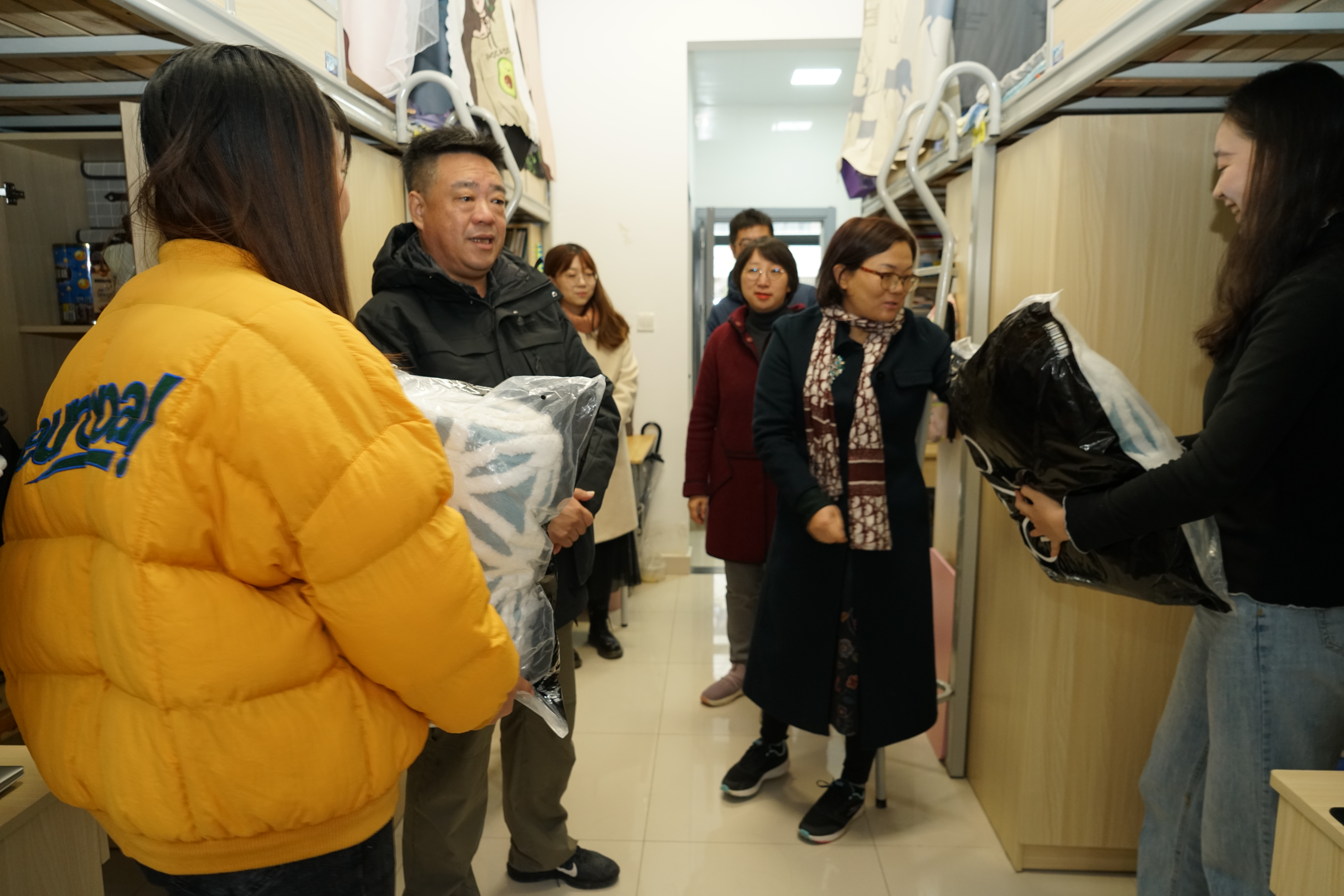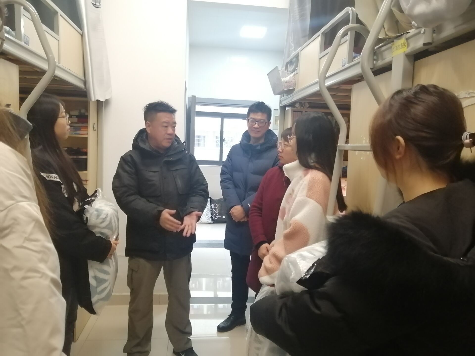 天气渐冷,太阳集团tcy8722关注院内经济困难员工的生活、学习。12月9日上午10:30,公司党总支梁忠臣书记、鲁玉杰经理、赵敏副书记、学业导师叶华老师、辅导员武兆文老师前往学生宿舍走访慰问太阳集团tcy87222019级经济困难员工。