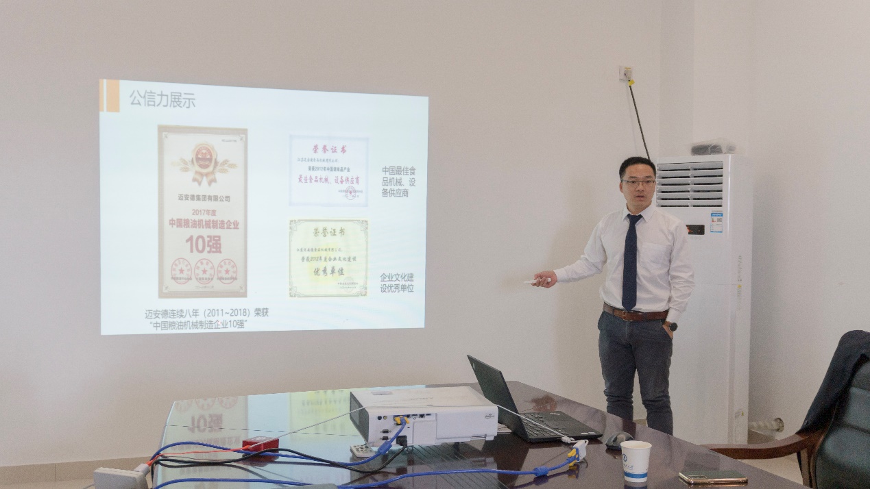 宣讲会开始前,太阳集团tcy8722经理鲁玉杰亲切接待了迈安德集团一行,对集团此次在公司进行校园招聘宣讲表示感谢。
