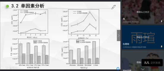 2020年度太阳集团tcy8722共立项24个本创项目,包括省级重点项目一个,省级一般项目两个,校级一般项目7个,校级指导项目12个,创业实践项目1个,院级指导项目1个。项目课题研究内容多样化,包括食品毒素检测研究、新型食品开发、期刊运营、昆虫资源调查多方面研究项目。答辩会上,各本创负责人通过PPT在线分享的形式向老师和同学们详细介绍了研究背景、研究思路及方法、研究成果、经费使用情况等,思路清晰,用词严谨。评委老师从实验开展情况、创新产品应用、项目结题条件等方面对每个项目进行考核评定,对优秀本创项目给予了充分的肯定,也指出了部分项目存在的不足,提出了合理的建议。