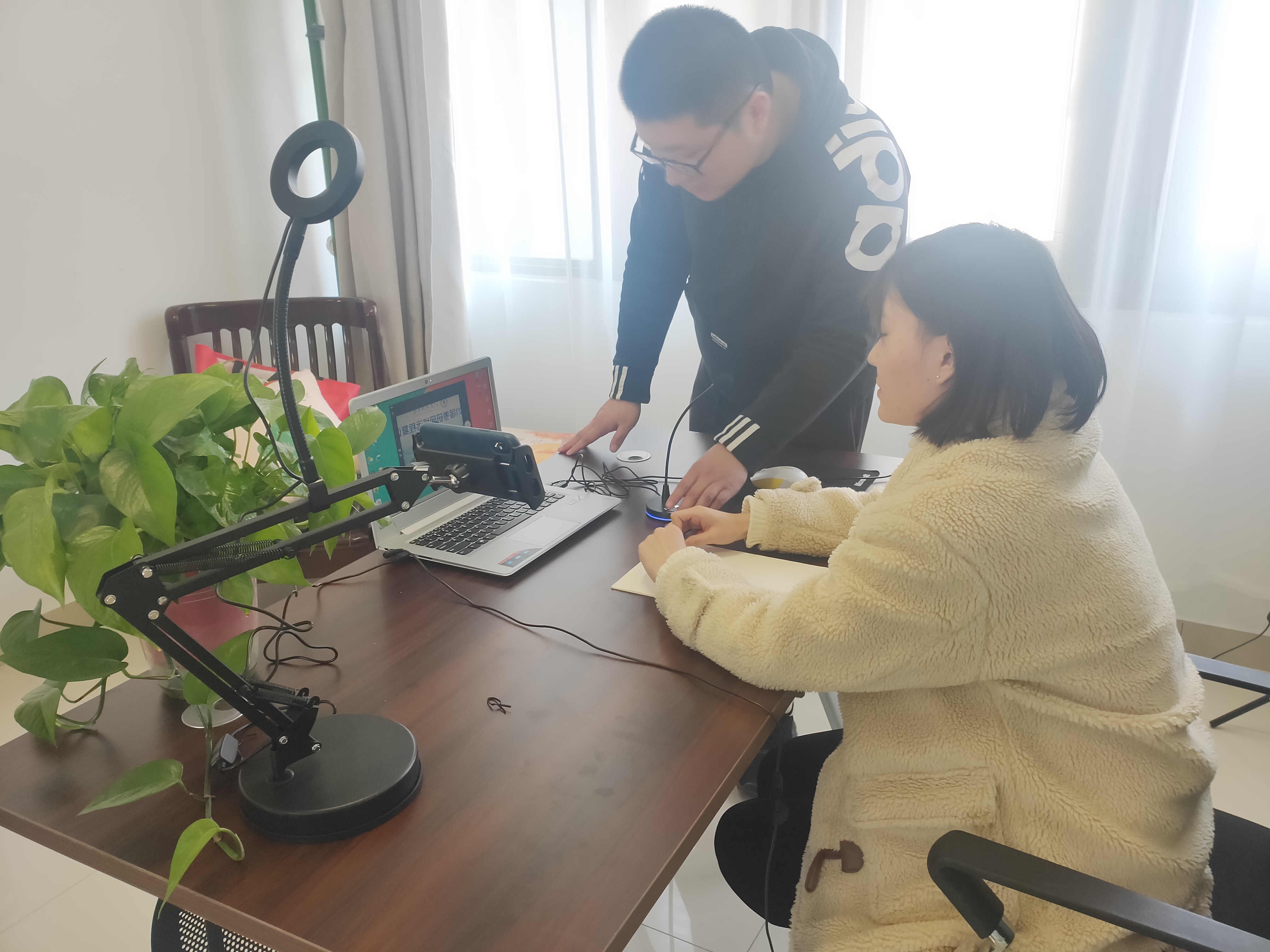 对于在校考研学子来说,急需解决的难题是复试场地如何选择。员工宿舍无法满足各高校对于线上复试的场地要求,而公司图书馆也暂未开放。了解到同学的燃眉之急后,公司学工办立即布置好2间活动室,专门购置了一批落地三脚架、桌面款手机iPad通用支架、笔记本电脑台式麦克风、接线板、茶歇等配套措施,提前打扫房间,全力为复试员工解决硬件设备和复试环境问题。