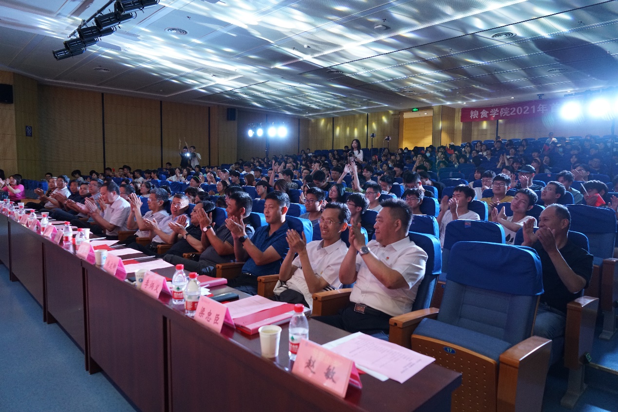 公司经理鲁玉杰在晚会上致辞,向2021届全体毕业生表示热烈的祝贺,对同学们提出了殷切的期望,期望同学们能够永远保持一颗进取之心,脚踏实地,追求卓越,时刻牢记粮食人身份,甘于奉献,勇于奋进,自觉地站在时代的前列,端牢中国饭碗,做一个“粮”心人。真诚地希望同学们在以后人生道路上做真实的自己。