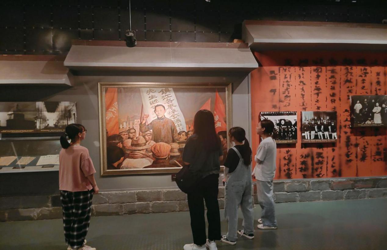 第三小组成员来到了镇江烈士纪念馆,整个展馆分为“鸦片战争”、“辛亥革命”、“党的创建”、“土地革”、“抗日战争”、“解放战争”、“社会主义”“缅怀厅”8个部分,共展出了牺牲在镇江和牺牲在外地的镇江籍3000余名烈士中231名烈士的事迹和遗物。展区的讲解让队员们深刻了解到烈士们背后的故事,也让更多人认识烈士,铭记英雄,缅怀先烈。小组成员兰钰祺同学表示:“一寸山河一寸血,一抔热土一抔魂。”在平安和乐、伟大强盛的祖国,我们应当遵循前辈的脚步,艰苦奋斗。