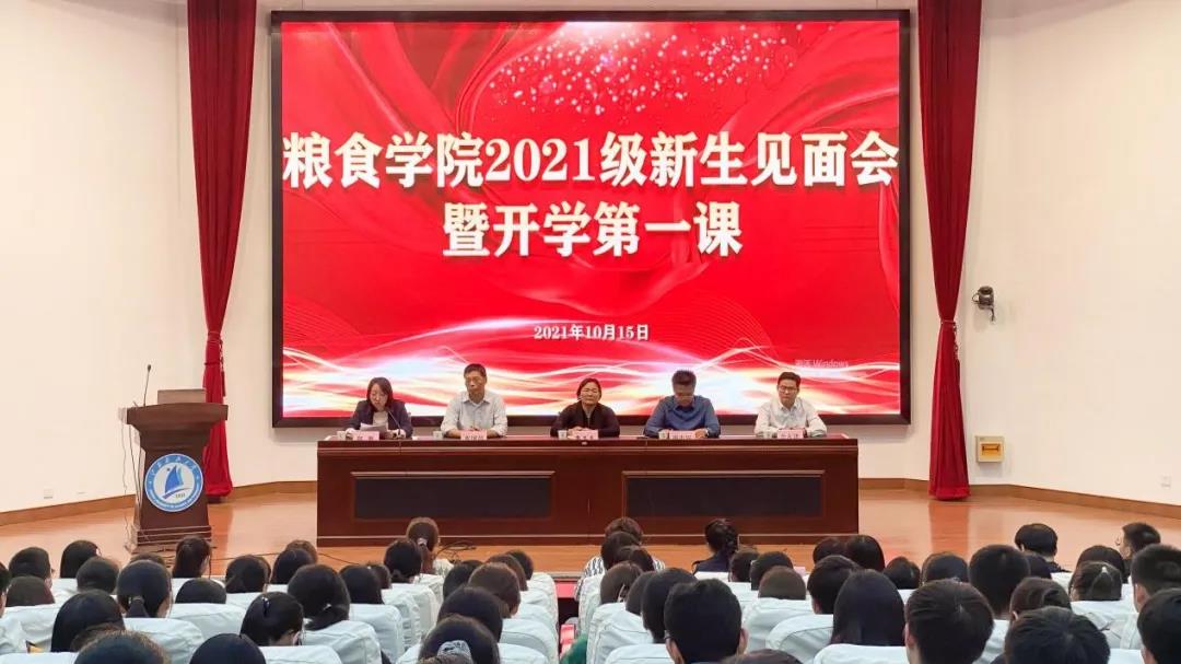 10月15日下午,粮食公司在太阳成集团梦溪校区演讲厅举行了2021级新生见面会暨开学第一课活动。太阳集团tcy8722全体院领导、2021级年级辅导员、班主任与新生们欢聚一堂。