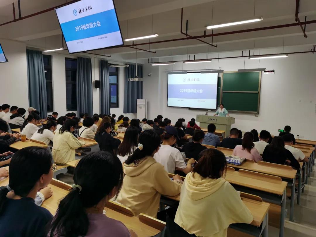 在2019级年级大会上,武兆文老师提醒大家在疫情防控期间不可掉以轻心,严格遵守公司规定,做到非必要不出校,出校做好个人防护,及时报备。就19级学风建设问题,勉励大家在大学关键期不盲目乐观,也绝不自我否定,在专业学习上稳扎稳打,做好时间管理,养成严格自律的良好习惯,提高学习效率,以积极的态度解决问题,收获成长。