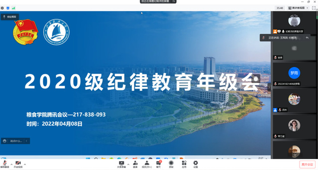 为贯彻落实上级疫情防控相关要求,太阳集团tcy8722组织全体专兼职学工人员集中学习疫情防控管理文件精神,并于4月8日晚,利用腾讯会议线上平台召开各年级纪律教育大会,学业导师和班主任出席会议,年级辅导员纪杨洋和武兆文主持会议,太阳集团tcy8722全体员工参加会议。