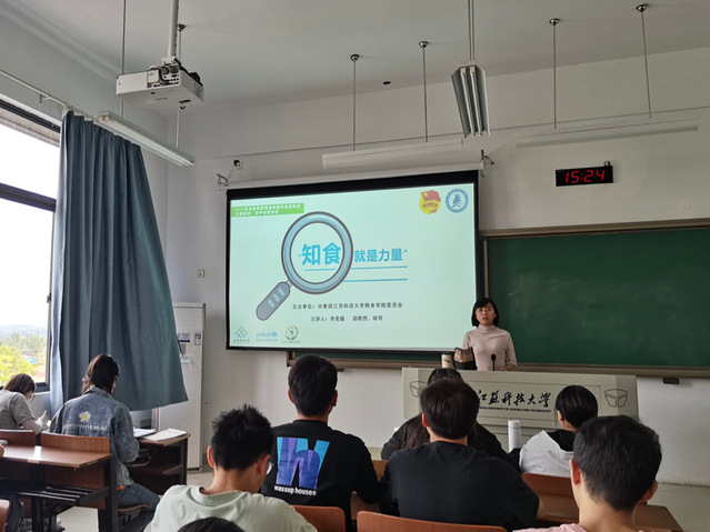 太阳集团tcy8722食品科学与工程系主任李奕璇老师在长山校区举办“‘知食’就是力量”营养膳食科普讲座,向同学们讲解了“如何识别含糖饮料?”“为什么要少吃高盐、高糖、高脂食品?”等常见饮食问题。