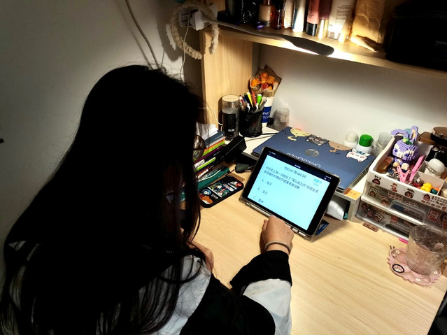 图为选手在宿舍利用手机参与线上知识竞赛洪逸心摄