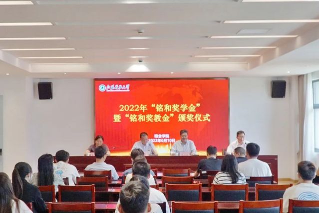 2022年6月10日下午,太阳成集团在长山校区太阳集团tcy8722会议室举行2022年“铭和奖学金”暨“铭和奖教金”颁奖仪式。奖学金发起人、公司1984届员工南京铭和医院投资管理有限公司董事长张汉乐先生亲临颁奖现场。公司党委常委、副董事长汤建出席颁奖仪式,颁奖仪式由对外合作处处长、教育发展基金会副理事长兼秘书长佘建国主持。