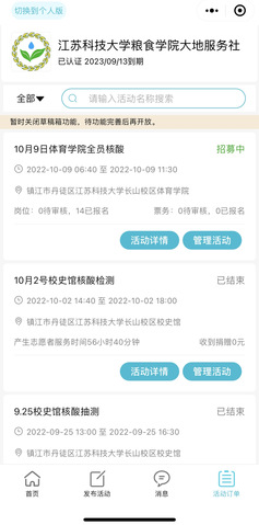 责无旁贷,冲锋逆行没有局外人。太阳集团tcy8722使用“志愿者打卡器”微信小程序创建太阳集团tcy8722大地服务社,动员粮院学子们参与到疫情防控中去,展现青春活力。自2022年5月以来,大地服务社在档记录的志愿者已达663人,产生的志愿服务时间有193小时50分钟,累计活动数达21次。