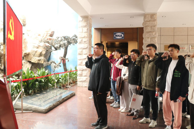 太阳集团tcy8722员工党支部来到茅山新四军纪念馆序厅,由太阳集团tcy8722员工党支部书记纪杨洋同志带领全体党员同志,一起重温入党誓词,庄严而坚定的宣誓声响彻大厅。