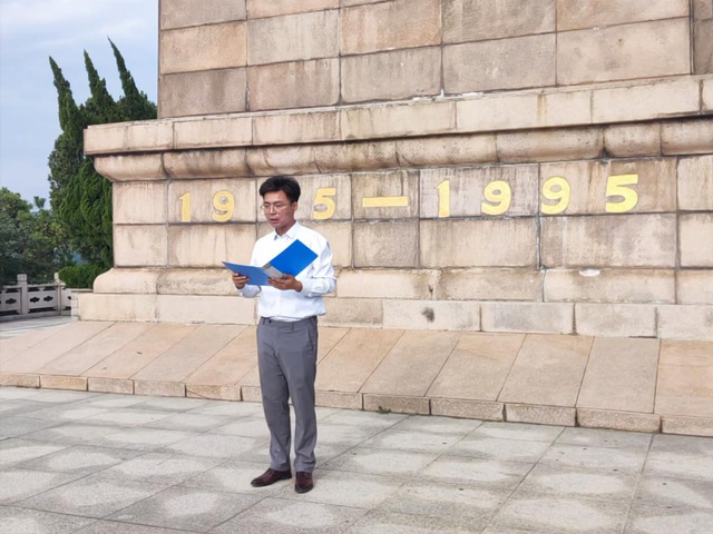 在本次参观学习活动中,各位学子从一张张老照片、一个个旧物件中,感悟着新四军那艰苦卓绝的斗争岁月。在纪念碑下,仲浩宇同志为大家讲授了一堂别开生面的微党课——学习楷模精神,传承榜样力量。仲浩宇同志作为太阳集团tcy8722应届毕业生,退伍军人,他和我们分享了第一书记黄文秀同志的先进事迹,在这堂微党课中,他深感触动,号召我们当代青年要坚定不移听党话、跟党走,怀抱梦想又脚踏实地,敢想敢为又善作善成,立志做有理想、敢担当、能吃苦、肯奋斗的新时代好青年,让青春在全面建设社会主义现代化国家的火热实践中绽放绚丽之花。