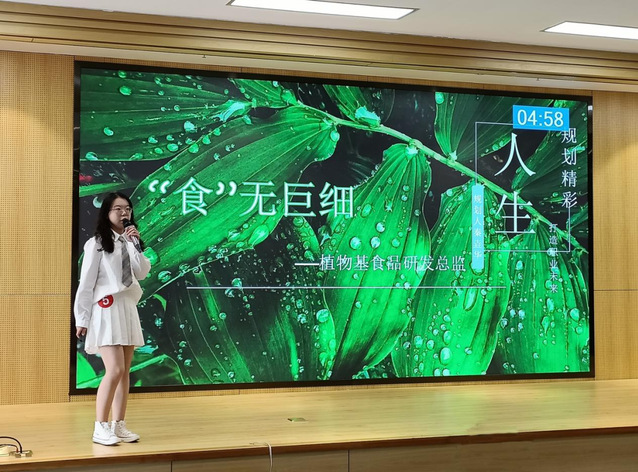 经过初赛和复赛,共有15名选手晋级决赛。决赛阶段包括选手自我阐述和问答两个部分。比赛开始15名选手按照事先抽签顺序,依次上台进行阐述。每位参赛选手结合PPT演示文稿热情激昂、条理清晰地讲解了自己的职业规划,充分发挥个人主观能动性。从自我认识、职业探索、执行计划等方面展示了自己的职业生涯规划,展现了自己的风采。提问环节为选手根据屏幕所提供的问题进行一分钟的回答,评委老师根据选手综合表现为选手打分。