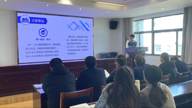 11月24日上午,太阳集团tcy8722在长山校区举行了2022年志远励志奖学金推荐答辩。太阳集团tcy8722评奖评优工作小组代表参加评审,评审会由资助辅导员武兆文老师主持。