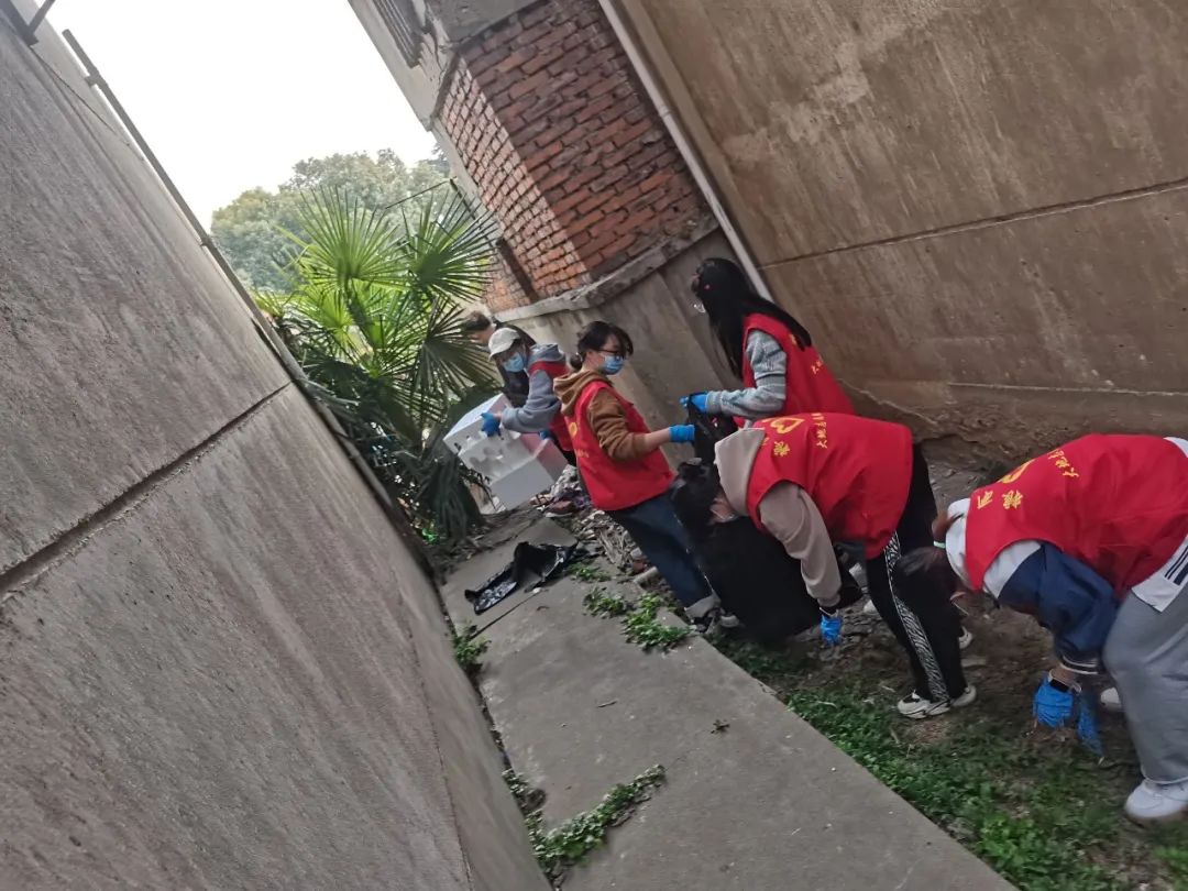 一进小区,同学们在社区工作人员的指导下分成两个小组,井然有序的开始打扫卫生。同学们清理了居民楼前空地的建筑垃圾,拔除了居民楼附近的杂草,并且对楼栋死角居民自行堆放的垃圾进行了处理,将所有垃圾进行分类,杜绝了消防安全隐患。经过一段时间的清理,小区内的垃圾基本清理干净。