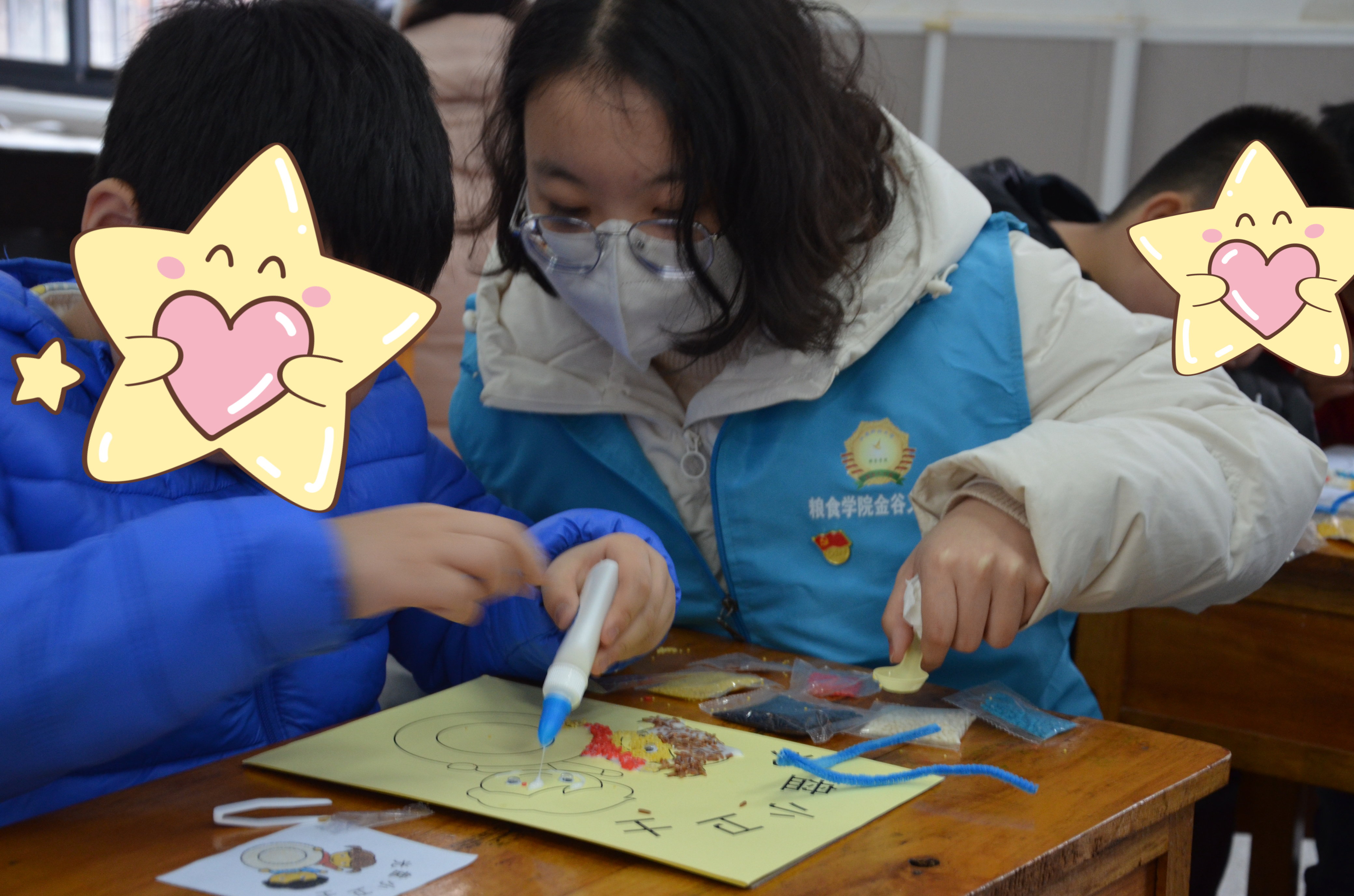 “牛奶蔬菜水果是健康绿色食品,油炸膨化薯片是红色垃圾食品。”“老师,看我用小米粘出的春天!”。特殊教育中心的教室里,飘出了孩子们的欢声笑语。3月17日,太阳集团tcy8722联合镇江市京口区特殊教育中心,开展“一样不一样,你我‘艺’样”关爱儿童成长计划活动。孩子们在志愿者们的关心和帮助下,突破身心的“茧房”,茁壮成长。