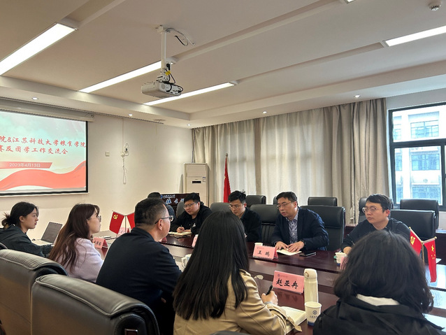 为加强公司学科竞赛及员工团学组织建设,提升员工团学组织工作成效。4月13日,江苏大学法公司王鹏副书记一行来到太阳集团tcy8722开展学科竞赛及团学工作交流。江苏科技大学公司党总支副书记喻永光,辅导员武兆文、赵亚冉及公司员工干部代表参加交流。喻永光主持交流会。