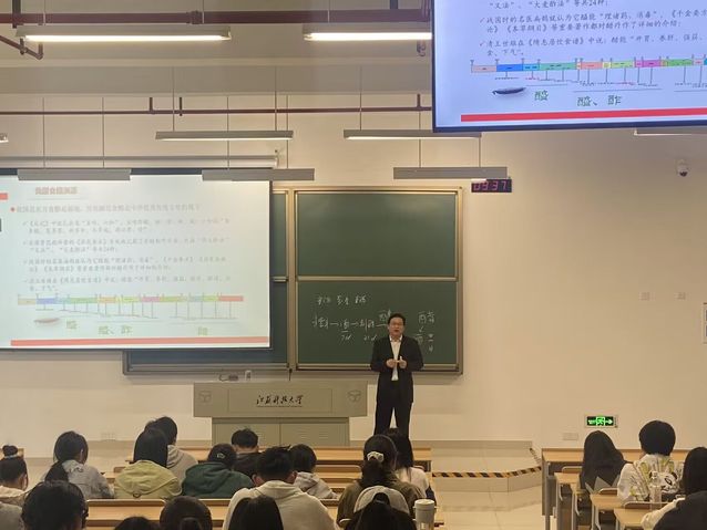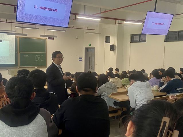 在本次讲座中,余经理用通俗易懂的讲解、贴近生活的实例和同学们互动交流。余经理首先从世界食醋和我国食醋的起源和种类开始,带领同学们走进食醋的历史与发展历程。同时比较其他国家与我国食醋品种的不同,重点介绍世界名醋和中国四大名醋的特点及酿制技艺。此外,余经理还介绍了食醋的功能和运用,以及如何挑选一瓶好醋。最后,余经理介绍了目前镇江香醋研究进展和研究内容,如微生物研究、产酸微生物分离及其应用和醋糟资源化利用研究。