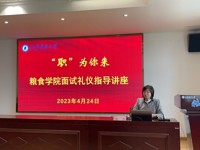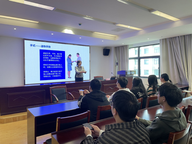 讲座上,梅亮老师以三国演义经典故事为例,向同学们讲解礼仪的重要性。“一个人给人的第一印象是难以泯灭的。”通过沟通金十字法则,具体讲解礼貌用语在面试环节的灵活应用。同时,重点讲述了仪表着装、面试礼仪、沟通技巧、言谈规范和举止禁忌等面试礼仪基本常识。