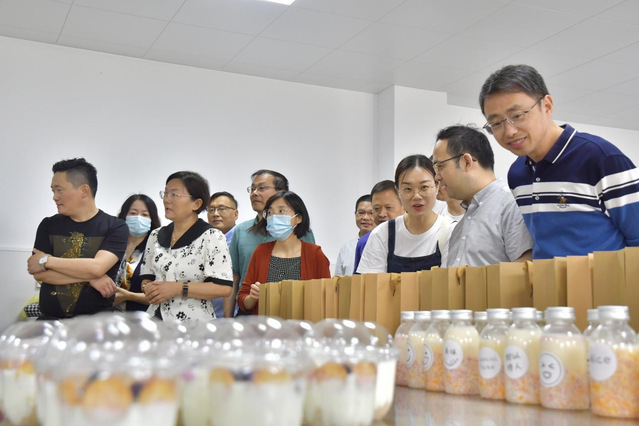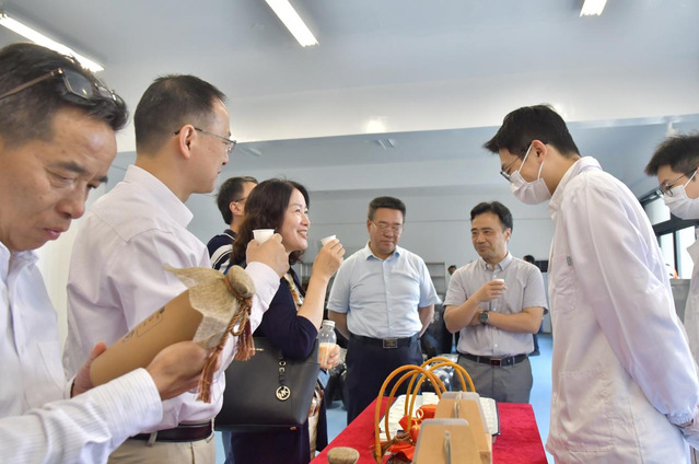 在太阳集团tcy8722专业特色实验室,领导和嘉宾参观品尝了由公司同学现场制作的蛋糕、饮品,公司自主开发的香醋、酒等特色产品。