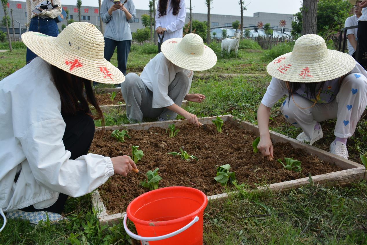 智慧农场试验田里,同学们拿起铁锹和犁耙,在讲解员的指导下,进行农作物种植体验。大家翻松土壤、平整土地、种下菜苗、浇水灌溉,了解了植物生长习性和养护办法,对种下的小菜苗许以无限期待。