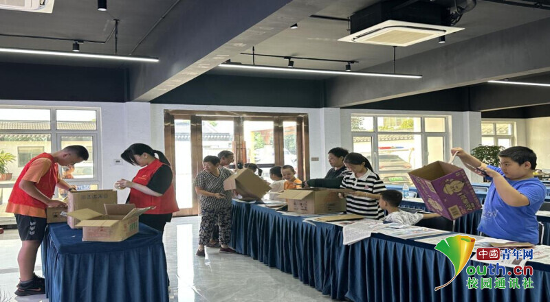图为实践团成员向村民分发制作手工作品的工具。中国青年网通讯员 黄晓豪 供图