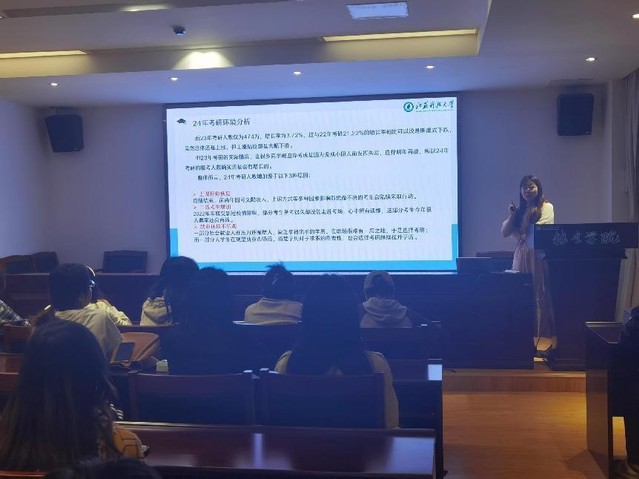 会议开始,武兆文老师结合公司考研前期摸底情况以及2024年考研难度进行系统分析,围绕“考研与就业形势”、“考研与就业如何协调发展”两个方面进行讲解,结合近几年公司的考研与就业数据、录取院校以及就业单位的实际情况,为同学们分析2024年考研与就业的趋势与动态,鼓励同学们在树立理想目标时,学会合理定位,用决心、信心、恒心去攻坚克难,在逐梦路上继续奋斗,以梦为马,不负韶华!
