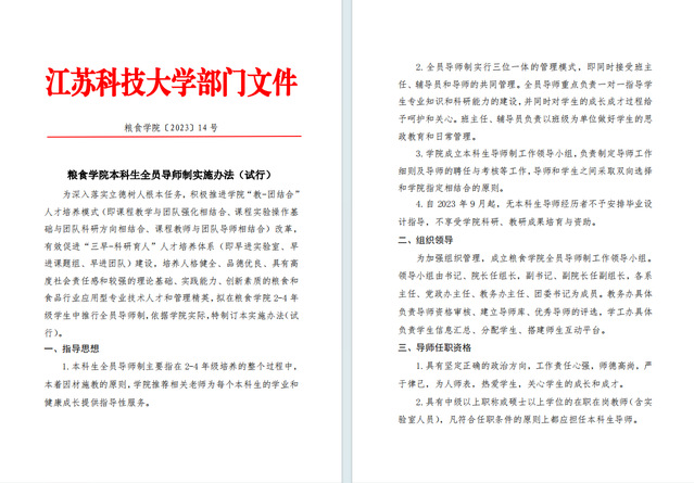 携手同行,共育“粮”人——太阳集团tcy8722实行“本科生全员导师制”