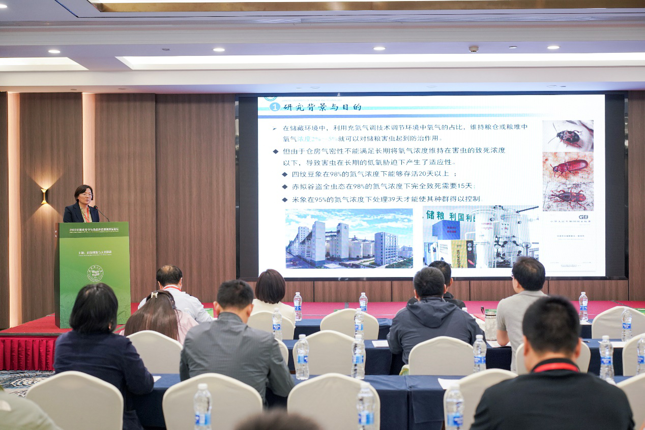 鲁玉杰经理应邀在“粮油储藏与储运”论坛上做了《类胰岛素信号途径对赤拟谷盗低氧适应性调控作用》的主题报告。