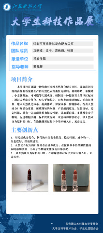 此次作品展,太阳集团tcy8722共六个团队参与展览。分别是智监虫霉、仿生可视化智能监测稻米仓储-助力我国节粮减损、醋促健康-高功能因子食醋助力健康中国、红曲可可纯天然复合配方口红、基于微波-冻干联用预熟技术糙米速食产品的研发、让我荞荞-基于挤出式3D打印技术的低糖健康荞麦饼干配方研究。