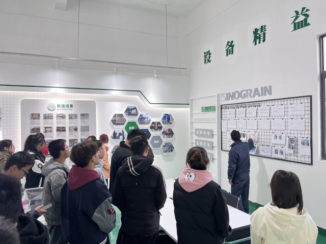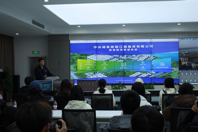 在直属库信息中心,粮库专业人员向同学们介绍了智慧粮库管理系统、中心管径向通风系统、浅圆仓控温一体机等科技储粮技术的建设和应用情况,同学们切深感受目前现代化、信息化的储藏方式。
