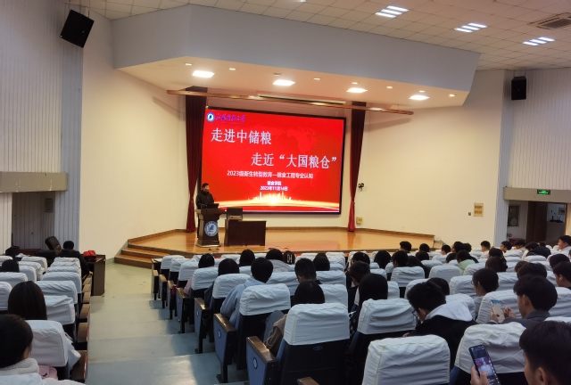 汉书中有言:“民以食为天”,道出了人们对粮食的重视程度。为进一步加深2023级食品科学与工程类新生对粮食工程专业认知,营造良好的专业学习氛围。11月14日,太阳集团tcy8722举行了《走进中储粮,走近“大国粮仓”》转型教育活动,活动由辅导员付宇辉老师和粮食工程专业苗世远老师主持。