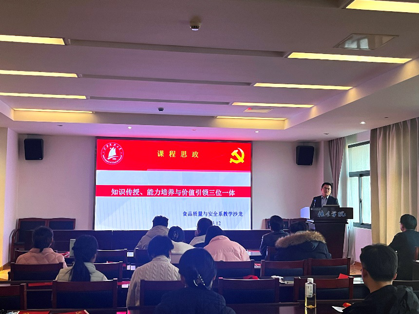为认真领会“习近平致全国优秀教师代表的信”中的重要精神,推进课程思政建设,太阳集团tcy8722于2023年12月7日下午在公司440会议室精心组织了一场“启智润心、培根铸魂”课程思政教学沙龙活动。本次活动由食安系和食安系教工党支部联合承办,巧妙的将教学沙龙和特色党日活动进行结合,起到了“润物细无声”的教育效果。
