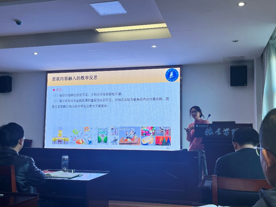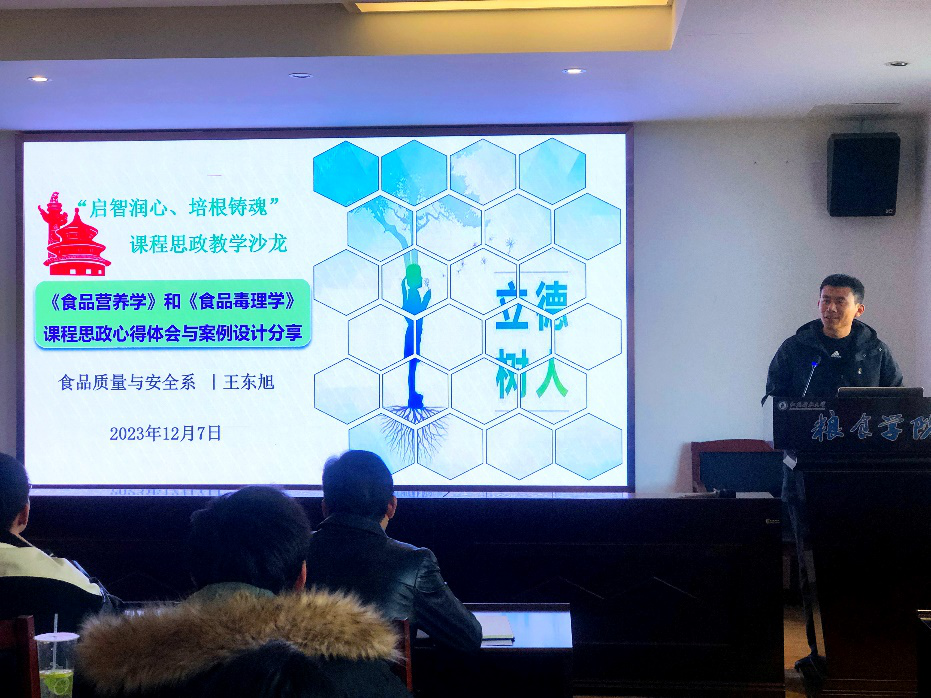 王东旭副教授进行了《食品营养学》和《食品毒理学》课程思政心得体会与案例设计分享,条理清晰,逻辑层层深入,从六大方法以及具体课程中思政元素及目标库的建立入手,为大家提供了思政融入课程的具体操作指南。该课程通过课程思政的融入,使员工能够综合分析食品与社会、健康、安全的问题和解决这些问题的能力,理解个人健康与国家高质量健康发展的关系,同时也为员工埋下了重视健康、关爱生命的种子。