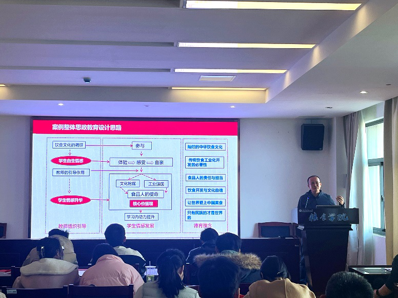 郭元新教授从师者--传道授业解惑开篇,为大家阐述了课程思政的内涵及发掘专业课程思政元素的思路。以《食品工艺学》中传统饮食产业化开发课程思政案例为例,介绍了思政案例设计的理念与方法。该案例鼓励员工研究古籍,发掘乡土的传统饮食,通过员工参与调查、制作、设计、分析的过程,使员工将食品工艺学的理论和弘扬中华民族灿烂的饮食文化相结合,使员工了解自己的使命担当,提高文化自信和职业自豪感。整个案例将中国元素融入课堂,将思想政治教育贯穿于公司产品全过程,让员工理解“只有民族的,才是世界的”,让员工树立为世界讲好中国故事和向世界推广中国饮食的观念。