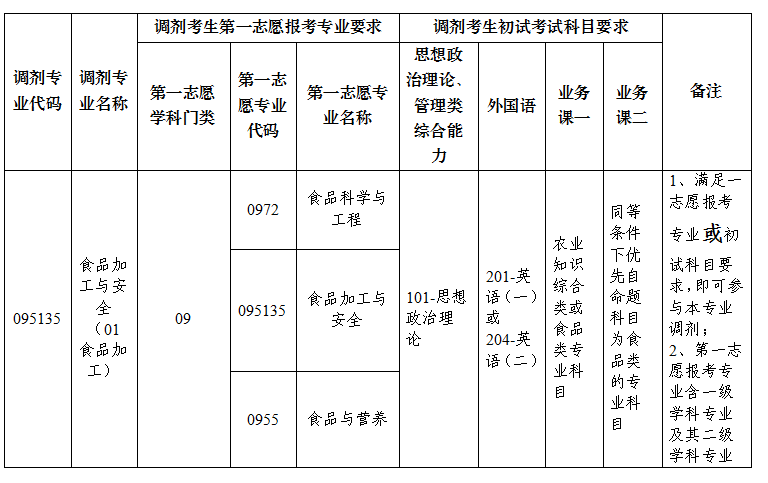 2024年太阳成集团太阳集团tcy8722“食品科学与工程”一级学科硕士点和“食品加工与安全(01食品加工)”专业学位硕士点有一定调剂指标面向全国考生调剂。公司已在研招网“网上调剂意向采集系统”发布上述专业接受调剂信息,考生可及时填写调剂意向。调剂服务系统开通12小时内,在满足条件的前提下,考生可将调剂意向转为调剂服务系统中的调剂志愿。具体情况如下: