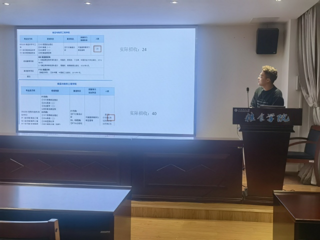本次会议共有4位升入国内外高校的学子分享择校策略、学习方法和心得体会。考入华南理工大学的黄念庭同学详细介绍了考研择校的步骤,以及政治、英语、数学、专业课的复习计划、资料推荐与学习方法。考入南京师范大学的邢泓雨同学以幽默风趣的语言向同学们强调了心态调整的重要性,以及向学弟学妹们总结了“考研避雷指南”。考入西北农林科技大学的马银幸同学讲述了自己调剂至985高校的艰辛历程,并告知大家“不到最后一刻不要放弃”。留学至澳大利亚昆士兰大学的侯明睿同学,详细介绍了申请材料、语言成绩、联系导师、面试技巧等全流程方法,给同学们分享了一条考研之外的道路。会议最后,辅导员赵亚冉以“选择、努力、坚持、心态”四个关键词寄语21级考研员工,希望同学们理性选择院校,努力复习知识、坚持到底不放弃、保持良好心态,最终收获成功果实。