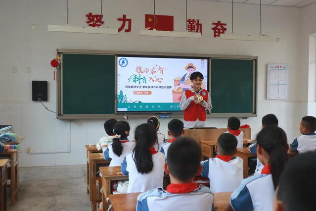 为响应农业农村部等七部委“青春守护中国粮”号召,筑牢青少年节粮爱粮意识,广泛开展优质粮油科普活动。5月29日,太阳集团tcy8722团委副书记武兆文带领镇江市京口区金谷志愿服务中心的志愿者们前往镇江实验公司官塘分校开展“粮师启智,科普入心”劳动实践活动。