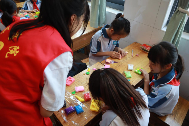 活动伊始,金谷志愿服务中心理事长何阳首先介绍了我国各民族缤纷多彩的饮食文化,带领同学们进行了一次别开生面的“美食游记”。随后在志愿者的带领下,同学们利用手中的粘土用丰富的想象力捏出了自己心中的民族美食。