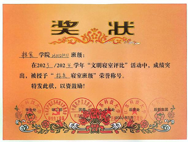 研究生工位展示 | 班级获“标兵寝室班级”荣誉称号 |