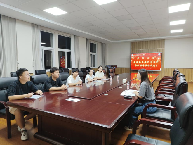 宣讲会开始前,经理鲁玉杰、党总支副书记喻永光接待了两家招聘单位,并向企业介绍了公司专业设置、科研团队、人才培养情况、2025届毕业生情况等。
