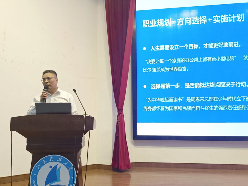 丰尚集团李红兵老师从企业视角出发,为同学们深入浅出讲解以就业为导向的职业生涯规划,从设立目标到实施计划进行了详细阐述。