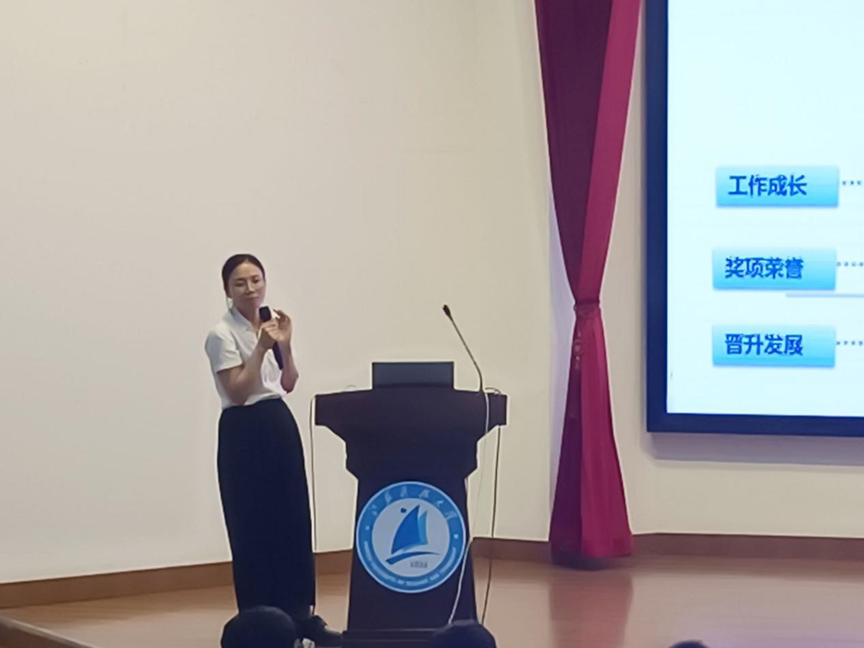 随后,杨莲老师向大家介绍了丰尚公司,并分享了以往成功案例和优秀员工的成长故事,让新生们对未来规划有了更加直观、生动的了解。