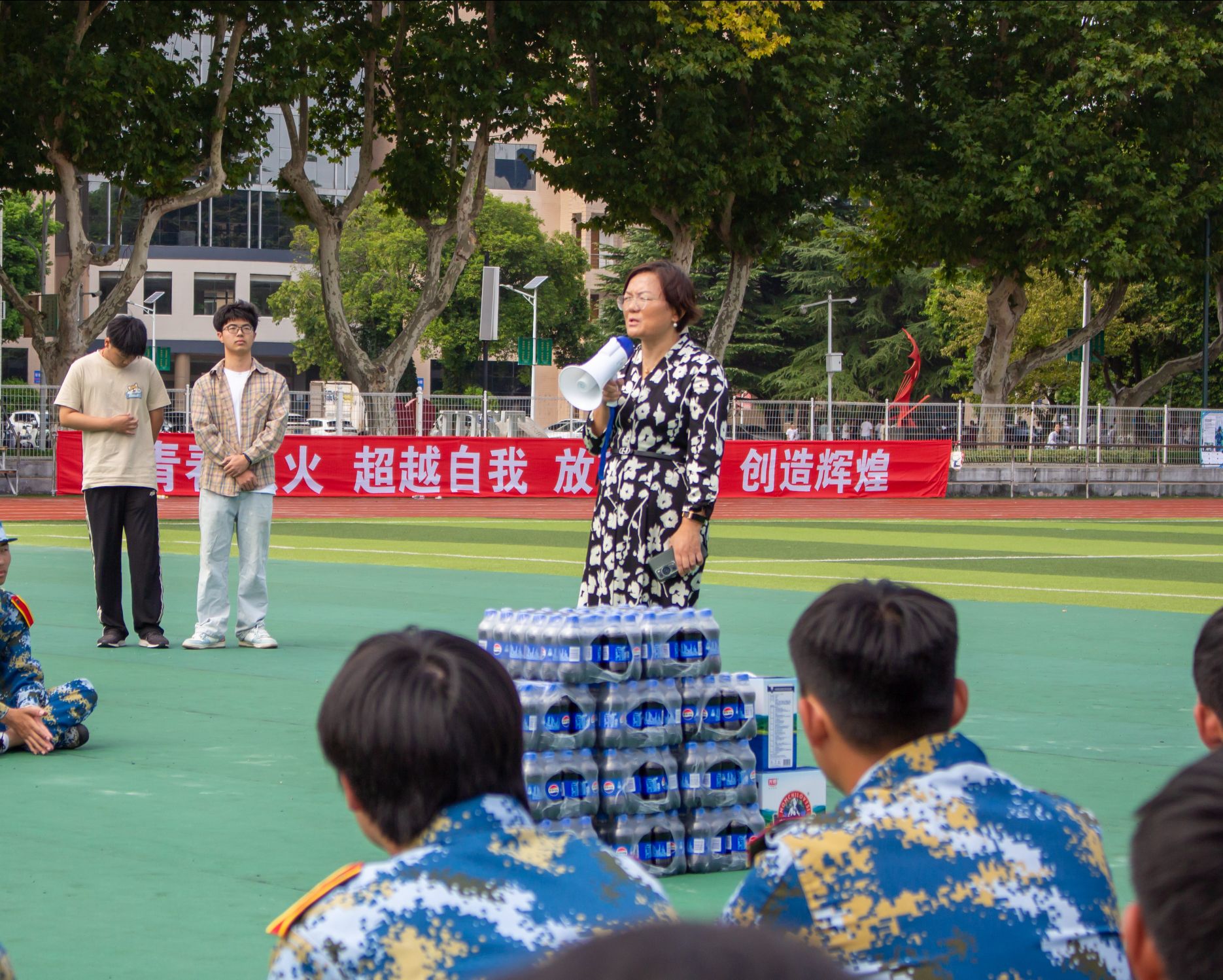 随后,老师们将准备好的慰问品一一分发给参训学子,老师们在分发慰问品时,亲切地与同学们交谈,询问他们的军训感受和生活情况,鼓励同学们要勇敢面对挑战,坚持到底,同时也要注意身体健康,合理安排休息。