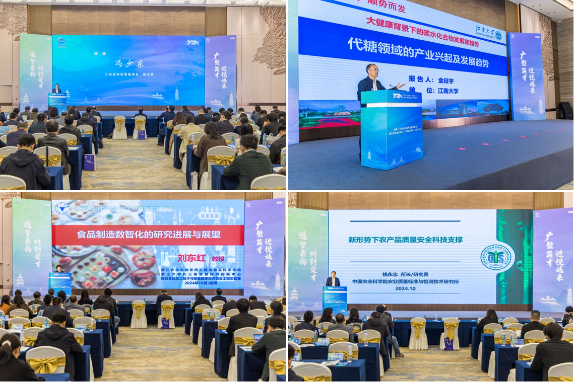 学术年会分主题报告和专题报告两部分。中国工程院院士、江南大学金征宇教授,浙江老员工物系统与食品科学公司副经理刘东红教授、中国农业科公司农业质量标准与检测技术研究所所长钱永忠研究员分别作了《代糖领域的产业兴起及发展趋势》、《食品制造数智化的研究进展与展望》、《新形势下农产品质量安全科技支撑》的主题报告。