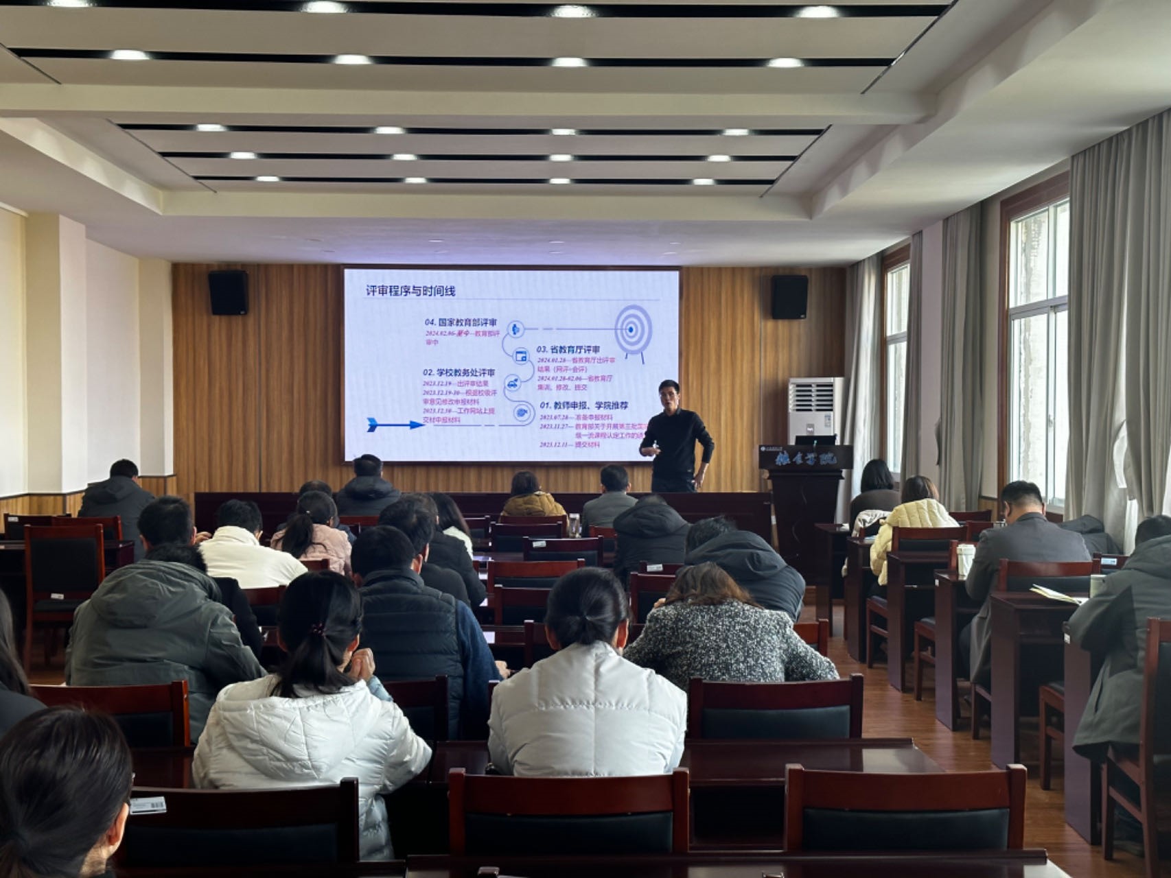 最后张晓伟副经理作了总结点评,指出课程建设是每位教师工作的基础和核心,各位教师要在日常教学工作中做到多关注、多总结、多学习、多实践。同时指出各系要尽早谋划,确定方向,团队合作,充分研讨,提高质量,切实把课程建好,把员工教好,把专业管好。